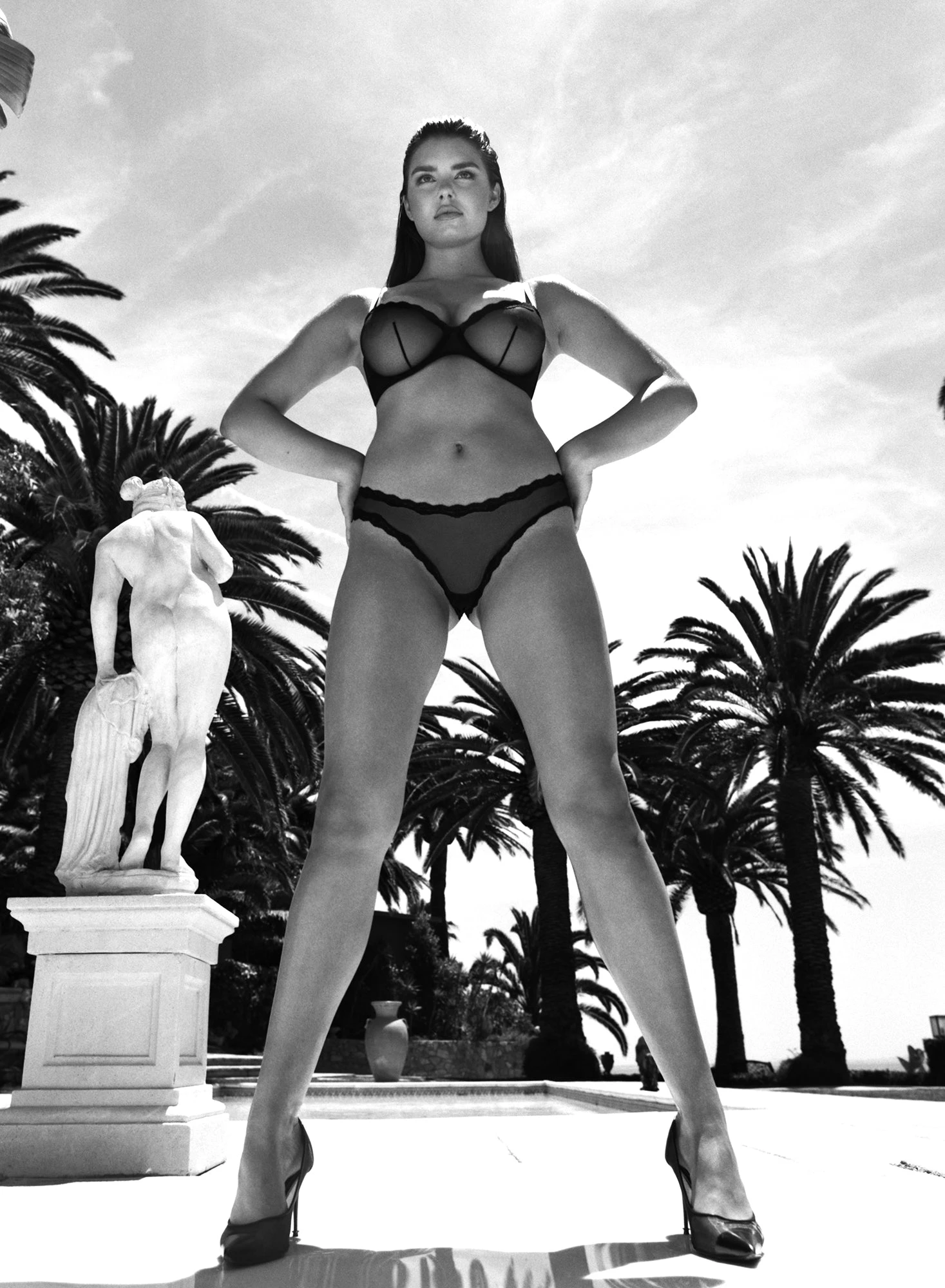 Our cups just got fuller. Our essentiel sheer demi bra has been re-engineered to offer the perfect amount of support for extended bra sizes. Unpadded lace-trimmed cups. Offers support and sexiness, making it our most essential underpinning. Pair with the sheer tulle bikini or thong.