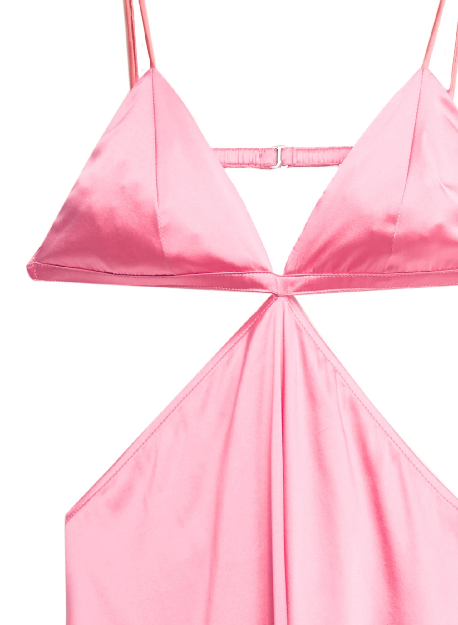 Bright ideas. Our Luxe Triangle Slip combines our best selling Luxe Triangle Bra with the ease and wearability of a slip. Features cut out sides and open back to amp up the sex appeal. Flattering bias cut silk charmeuse hugs every curve. Falls just below the knee. Layer over the matching Luxe Thong for a chic look that will take you from happy hour to after hours.