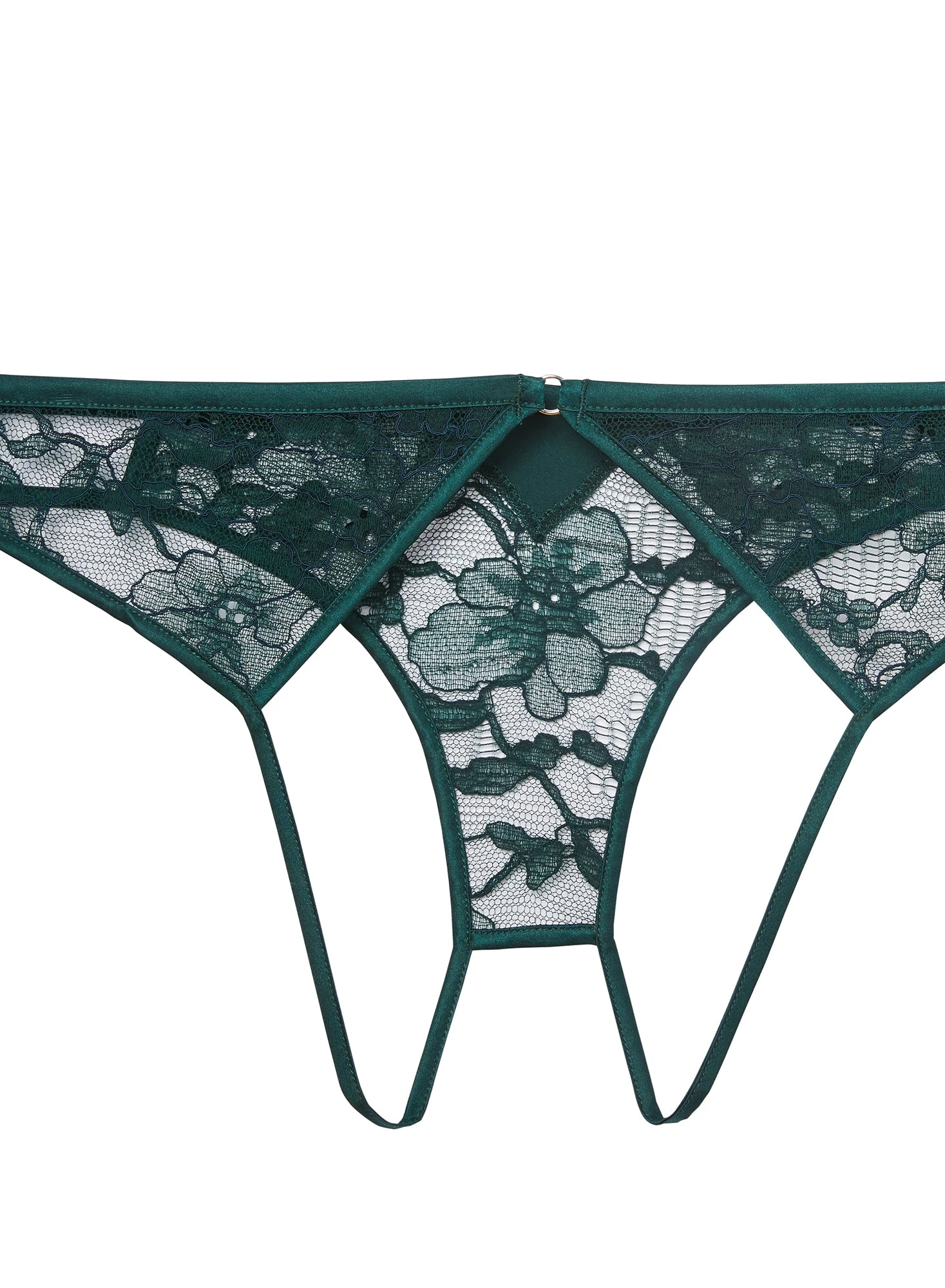 Risqué business in the front, party in the back. Our new Magnolia Lace Ouvert Panty, cut from stunning stretch French Leavers lace. Crotchless with open back. Complete this seriously sexy set with the Magnolia Lace Unlined Demi Bra.