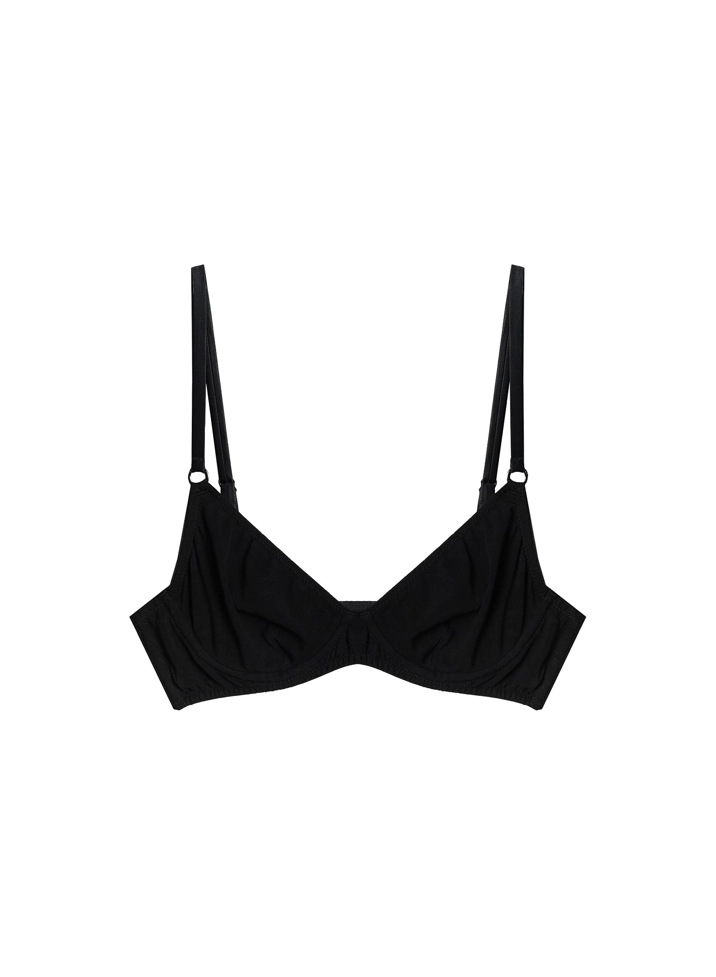 Un-dress to impress. Cut from 95% organic cotton, our Organic Cotton Unlined Demi Bra is soft, breathable, and hypoallergenic. Features underwire cups for support, and silk adjustable straps with o-ring detail. Solid stretch wings with back hook and eye closure for a customized fit. Complete the set with the matching Organic Cotton Cheeky or Organic Cotton Thong.