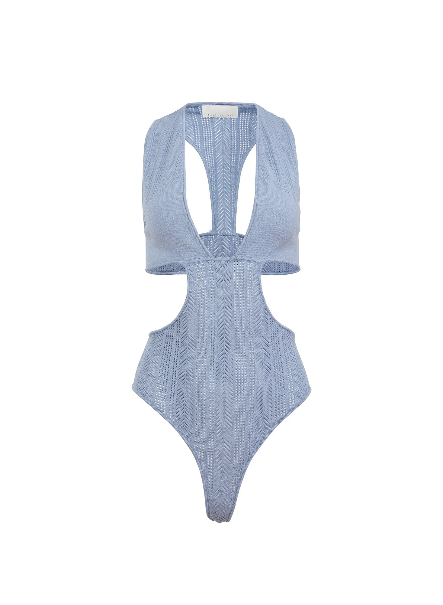 Side to side. Our Pointelle Cutout Bodysuit, cut from soft stretch knit that hugs your body in all the right places. Features flattering low cut neckline with side cutouts and linear pointelle detailing. Bottom snap closure. Looks effortlessly chic with jeans, or paired with our Rose Stripe Denim Mini Skirt.