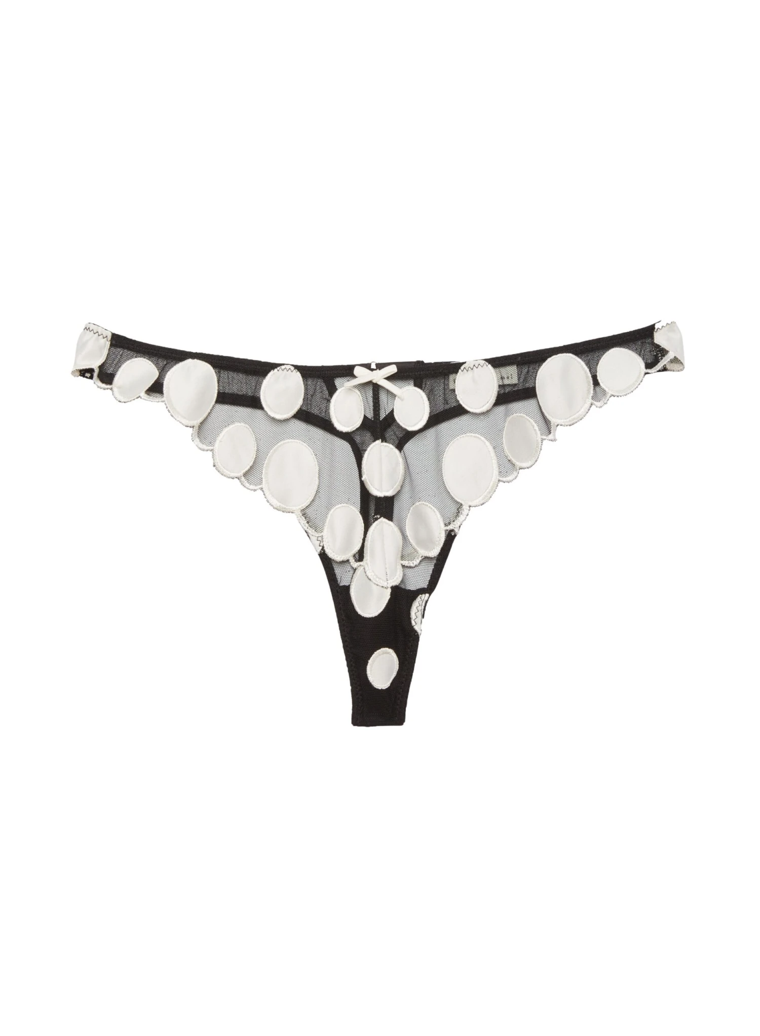 Seeing spots. Our flirty Polka Dot Embroidery Thong, featuring luxe satin polka dot embroidery on sexy sheer tulle ground. Thong cut with mesh back and keyhole detail. Complete the set with the matching Polka Dot Embroidery Balconette and Garter.