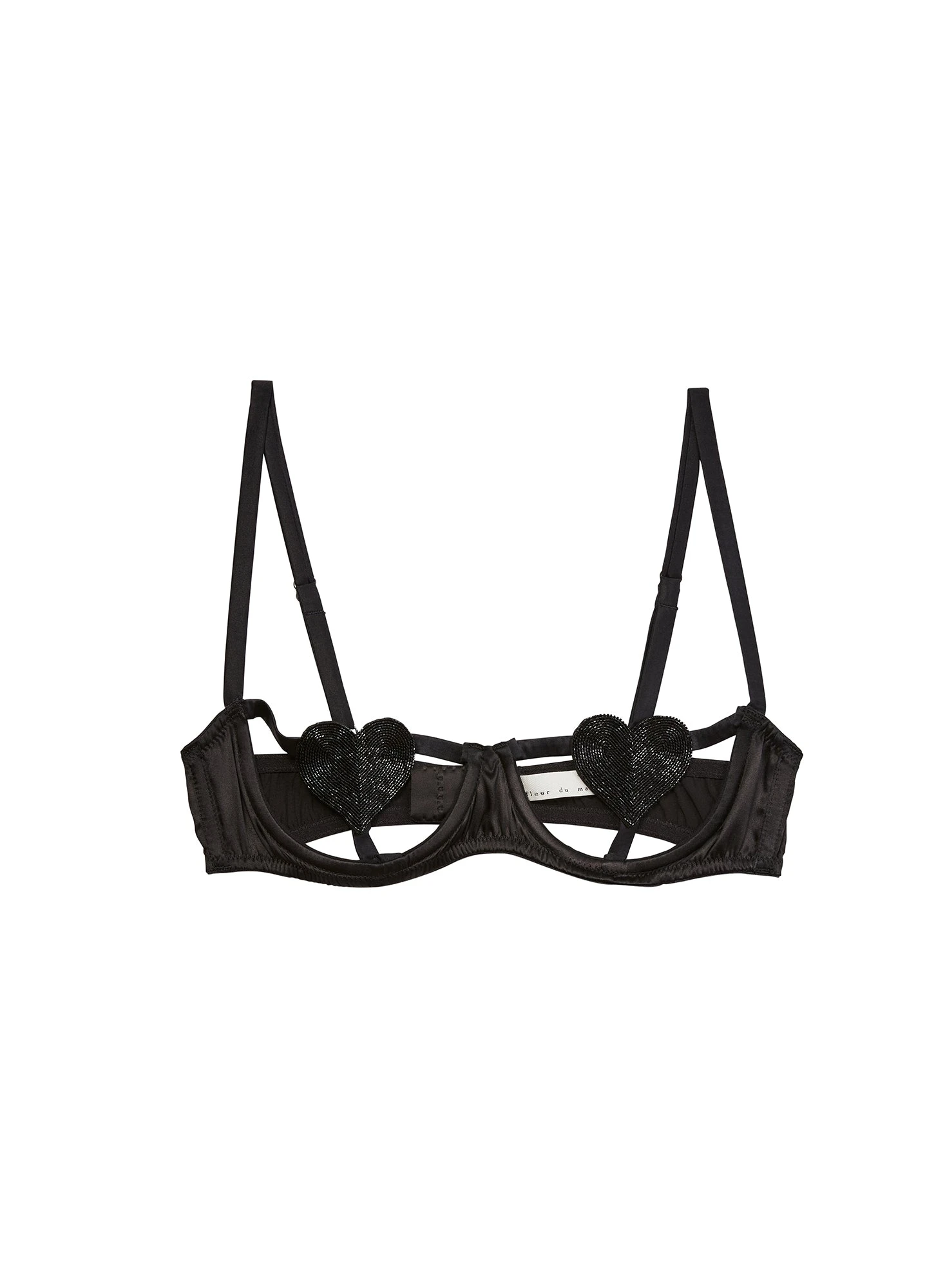 Play peekaboo in our ultra hot, barely-there underwire bra. Our no cup Queen of Hearts Balconette Bra features hand-beaded hearts with luxe silk trim. Underwire and adjustable straps provide subtle shaping and lift, with adjustable back hook and eye closure. Complete this seriously sexy set with the matching Queen of Hearts V String.