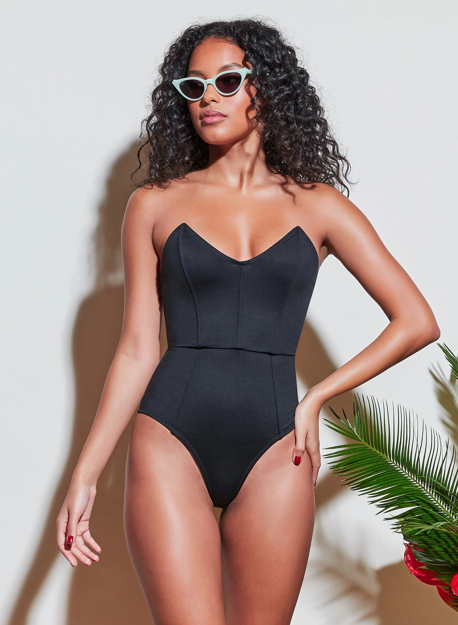 Our smoking hot one piece strapless swimsuit in classic black. Made from an Italian stretch fabric that holds you in and flatters the figure. Fully lined with exposed back zipper. Works perfectly from beach to bar.