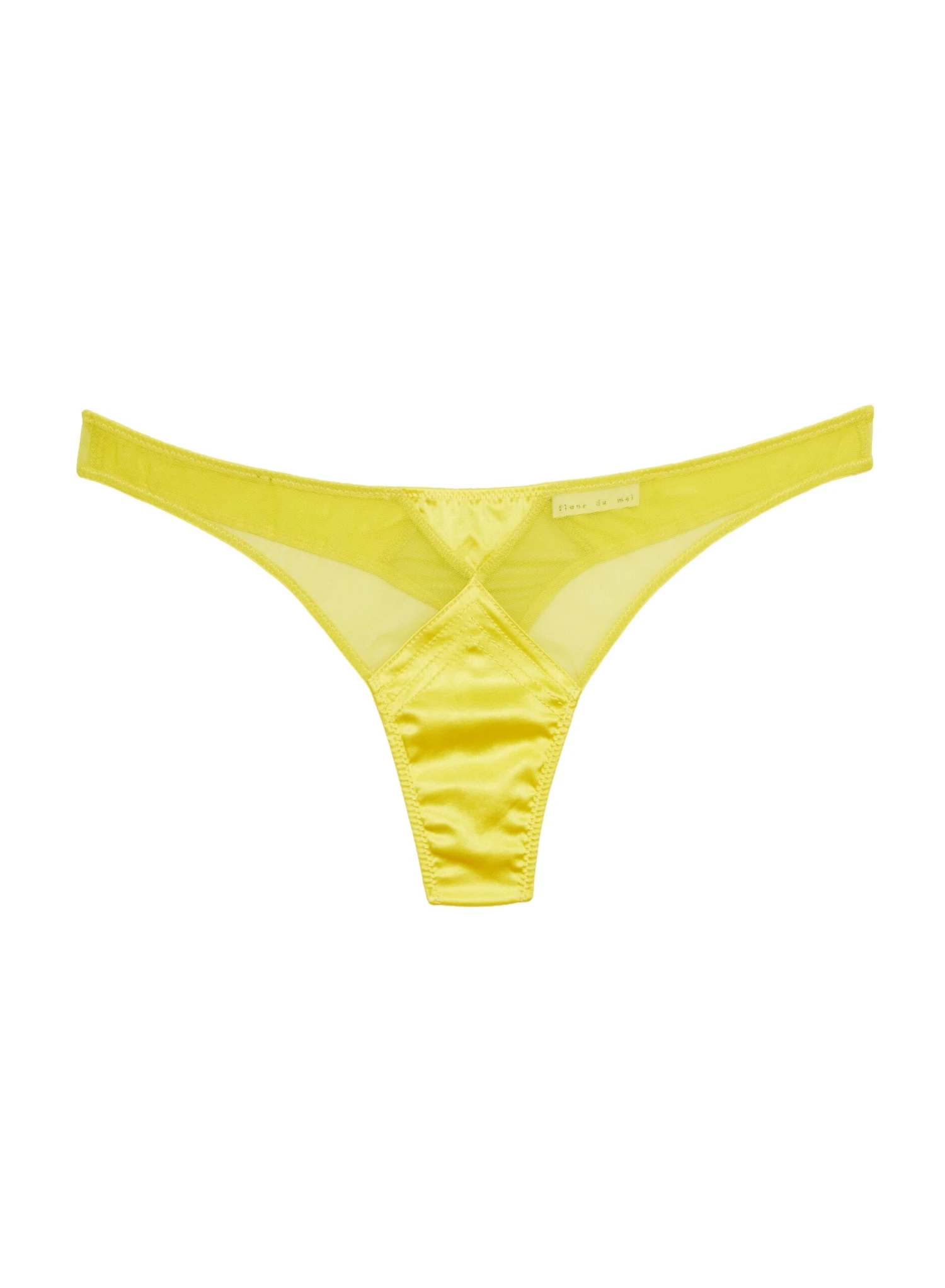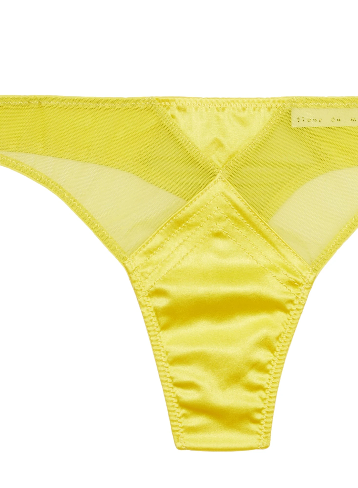 Ultra luxe silk satin thong with top stitch detailing at front and stretch tulle side panels. Pair it with the matching Top Stitch Bebe Bra and Cropped Hoodie.