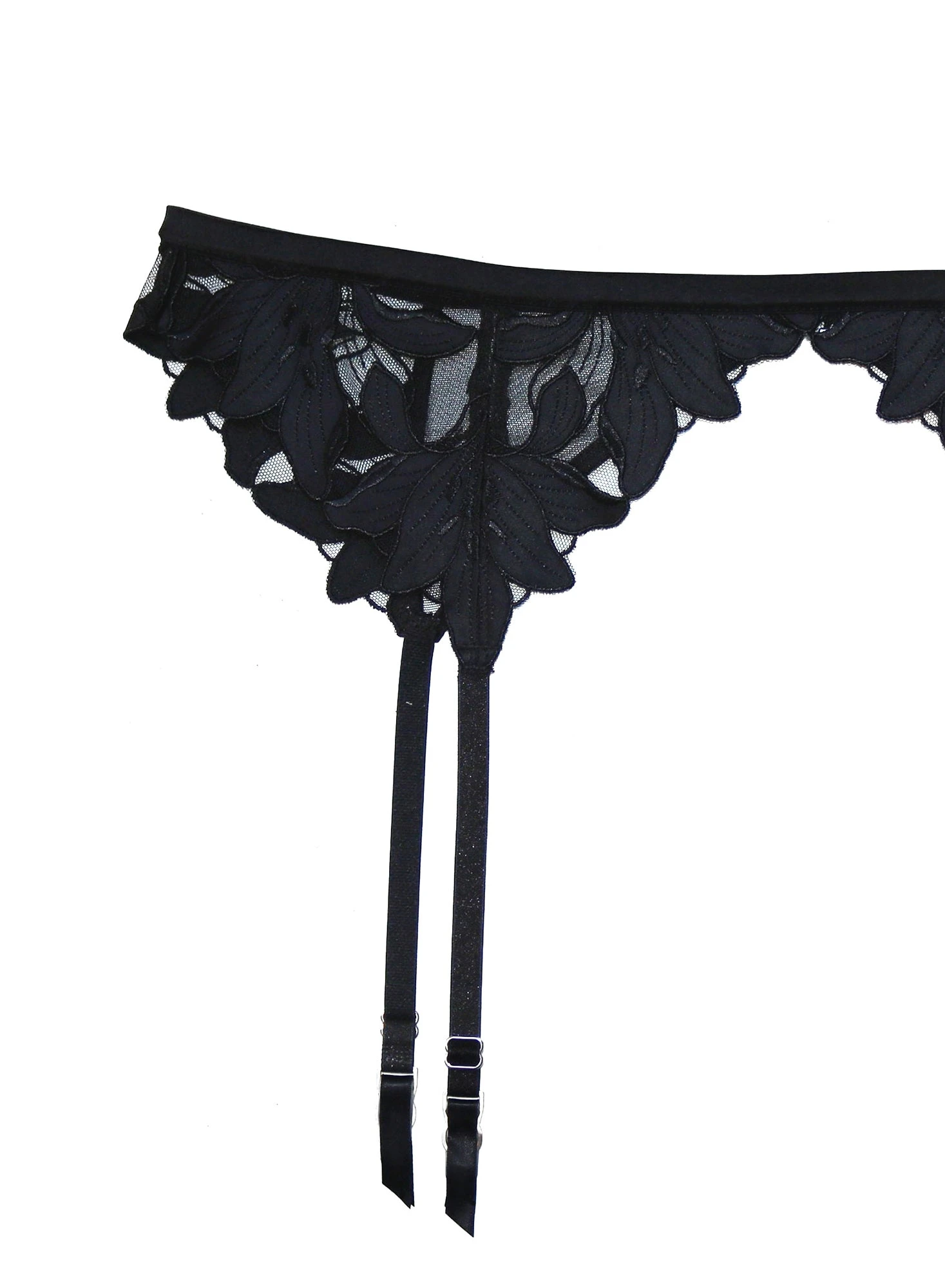 So precious. Our signature Lily Garter Belt has been re-engineered for extended sizing and is the perfect addition to any bra & panty set. Features lily embroidery and mesh paneling. Center back closure sits at waist. Pair with the matching FDM x Precious Lily Longline and Thong for an immaculate set.